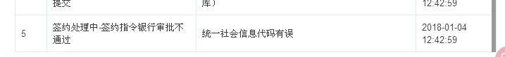 如有,说明您在开户行的统一社会信用代码信息存在问题,请联系您的开户行修改统一信用代码信息。待修改成功后,再次发送签约请求。