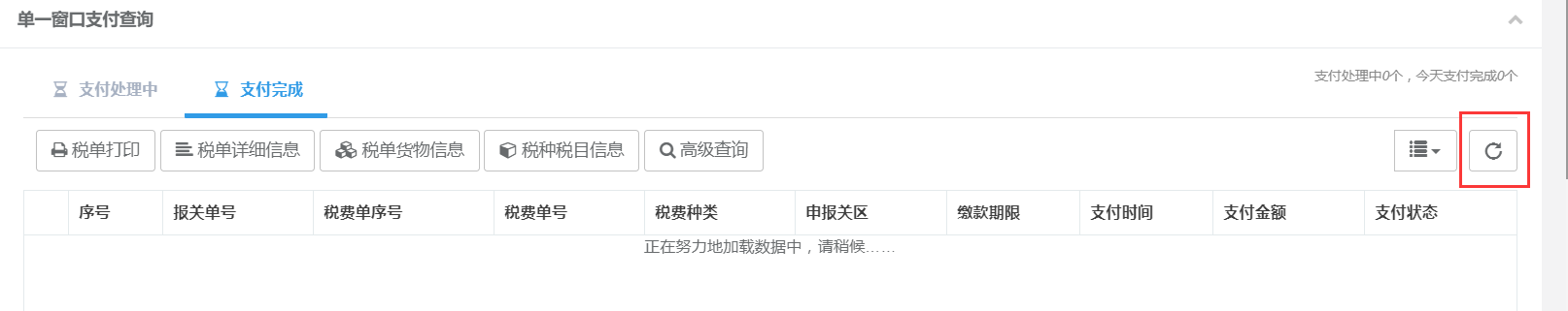 答:点击刷新按钮,即可看见成功支付税单信息。
