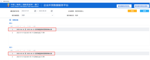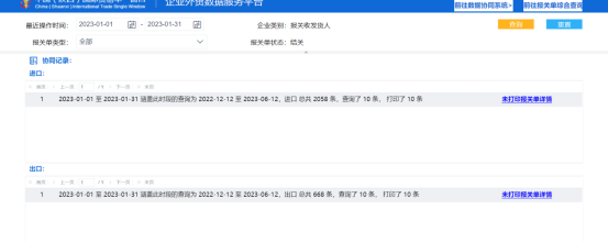 以上案例中的提示说明在2023-01-01至2023-06-20的查询区间内用户未完成对2023-06-16至2023-06-19之间的报关单打印预览操作,需要点击右上方的“前往数据协同系统“按钮,进入数据协同系统对2023-06-16至2023-06-19之间的报关单执行打印预览操作: