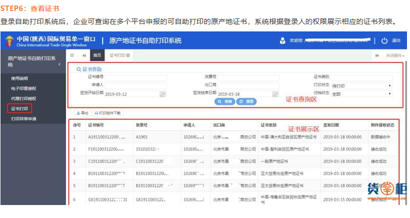 (3)仅可查询证书出口商或申请人是自己所在企业的证书。
